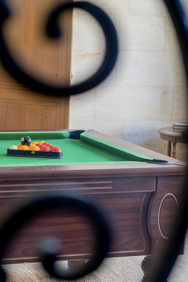 Organisation d’un mariage, d’une cérémonie familiale entourés de vos amis, organisation d’un séminaire professionnel, d’une conférence de presse, lancement de produit, réunion professionnelle, cet espace peut également se prolonger dans le chai à barriques qui lui peut aussi accueillir une centaine de personnes. Propice aux soirées dansantes, aux dîners, Donnant directement sur la salle de billard de la Maison de la Fleur, la tradition se connecte à la modernité, tout en douceur.